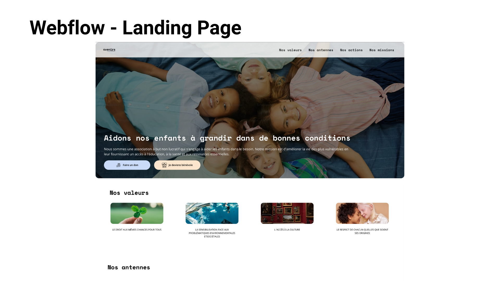 Avenirs est une association engagée (fictive) pour l’égalité des chances, l’accès à la culture et la sensibilisation aux enjeux sociaux et environnementaux.